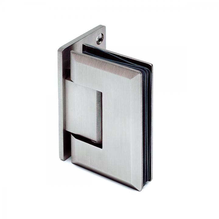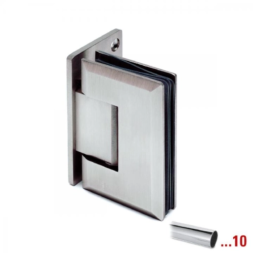 La cerniera a scatto vetro–parete modello 01-128 è realizzata in acciaio inox AISI 304 ed è progettata per il fissaggio di ante battenti in vetro per box doccia.