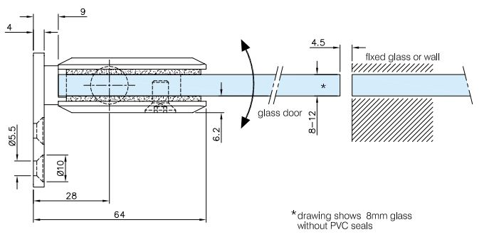 Compatibile con vetro spessore 8–12 mm, la 01-128 garantisce una portata massima dell’anta fino a 40 kg. La struttura è studiata per distribuire correttamente il carico sulla parete, riducendo sollecitazioni e usura nel tempo.