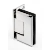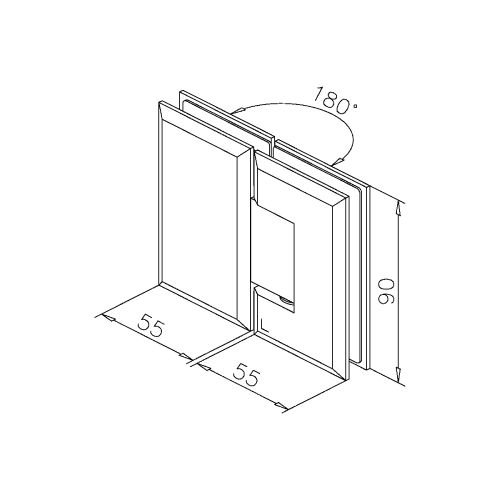 L’attacco vetro–vetro a 180° consente configurazioni lineari tra i pannelli. Il meccanismo a scatto con perno di rotazione +90°/−90° permette il posizionamento controllato dell’anta nelle posizioni di fine corsa, migliorando stabilità e sicurezza durante l’apertura e la chiusura.