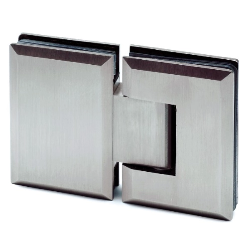 La cerniera a scatto vetro–vetro modello 01-131 è realizzata in acciaio inox AISI 304 ed è progettata per il collegamento diretto tra due lastre di vetro in ante battenti per box doccia.