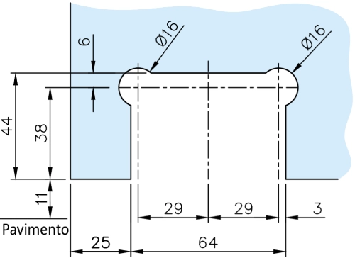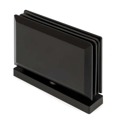 Cerniera a bilico a scatto con attacco pavimento e soffitto in acciaio inox per vetro 8–10 mm. Portata max anta 40 kg. Finitura lucida, satinata o nera.