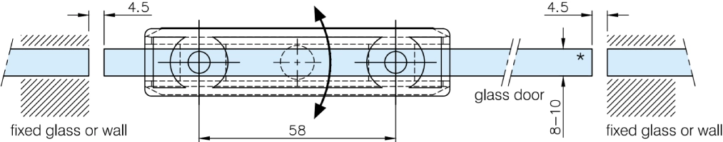 Cerniera Bilico a scatto in acciaio inox per porta in vetro.