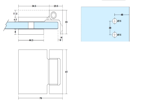 Cerniera libera quadrata vetro–parete con attacco in acciaio