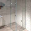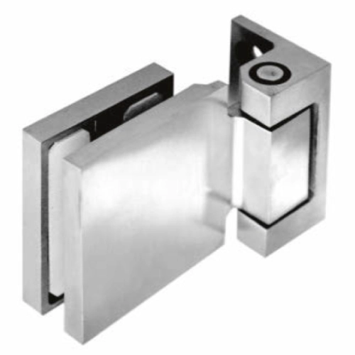 Cerniera libera quadrata vetro–parete con attacco a in acciaio inox AISI 304 per box doccia. Per vetro 8–10 mm, portata max anta 40 kg. Finitura lucida, satinata o nera.