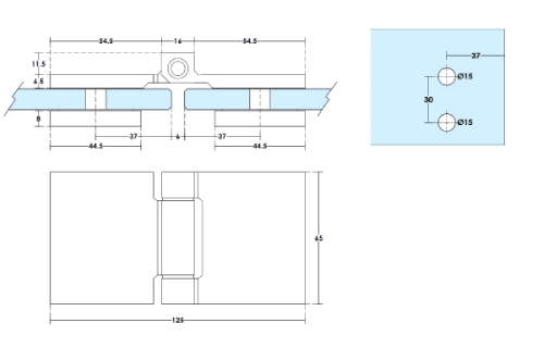 01-200 Cerniera libera vetro-vetro in acciaio inox AISI 304 – Vetro 8–10 mm – Portata max 40 kg – Misura:125×65 mm