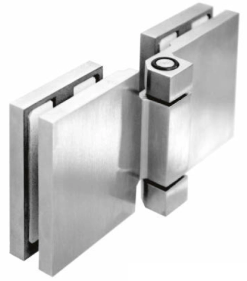 La cerniera libera vetro-vetro modello 01-200 è realizzata in acciaio inox AISI 304 ed è progettata per il collegamento diretto tra due lastre di vetro nei box doccia e nelle strutture in vetro per ambienti bagno, consentendo un’apertura ampia e completa fino a 180 gradi.