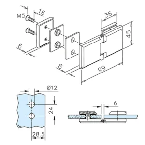 Cerniera libera vetro-vetro Dimensioni: 99×45 mm