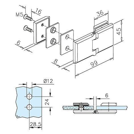 La struttura libera consente un’apertura fluida e naturale dell’anta, senza meccanismi di scatto o ritorno automatico, garantendo semplicità costruttiva e affidabilità nel tempo. La cerniera è compatibile con vetro spessore 6–10 mm e assicura una distribuzione corretta del carico tra i due pannelli in vetro.