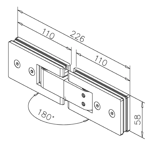 Cerniera regolabile a scatto vetro–vetro con attacco 180° in acciaio