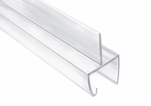 La guarnizione in PVC con pinna centrale modello 01-458 è progettata per applicazioni su pannelli in vetro per box doccia e strutture in vetro, con funzione di migliorare la tenuta e la protezione nei punti di contatto.