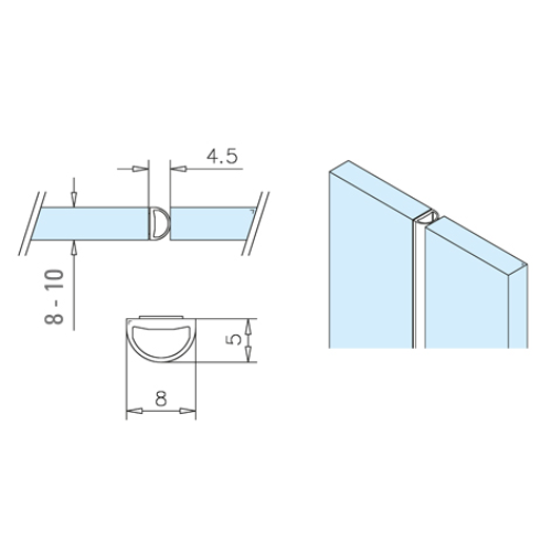 Guarnizione PVC a palloncino con adesivo per vetro 8/10 mm, lunghezza 5000 mm. Installazione semplice e maggiore tenuta per box doccia.