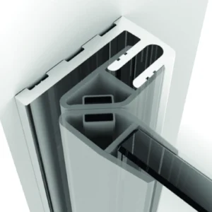 Per ottenere una chiusura uniforme, verifica sempre che le cerniere siano correttamente regolate prima del fissaggio definitivo del profilo. Un montaggio in asse garantisce battuta precisa e lunga durata nel tempo.