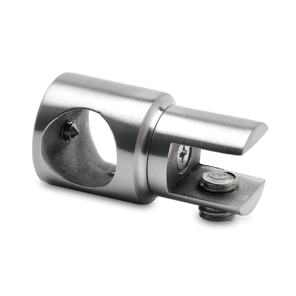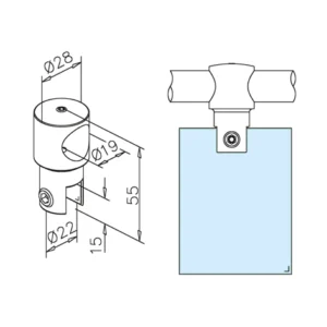 Supporto tubo passante Ø19mm in acciaio inox AISI 304 per barra stabilizzatrice box doccia. Fissaggio continuo, solido e disponibile lucido, satinato o nero.